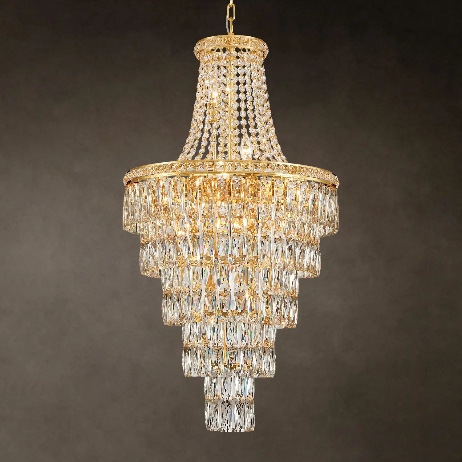 This crystal chandelier is breathtaking—exactly as pictured, and even more impressive in person. The sparkling crystals add a touch of elegance to our home décor lighting. Installation of the crystals takes some patience, and the fixture is heavy, so we recommend professional installation if you’re not experienced. The end result is well worth it!