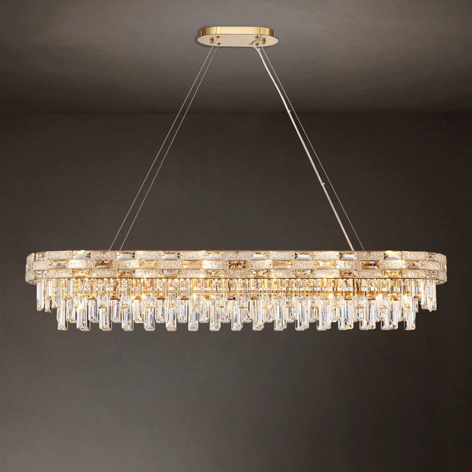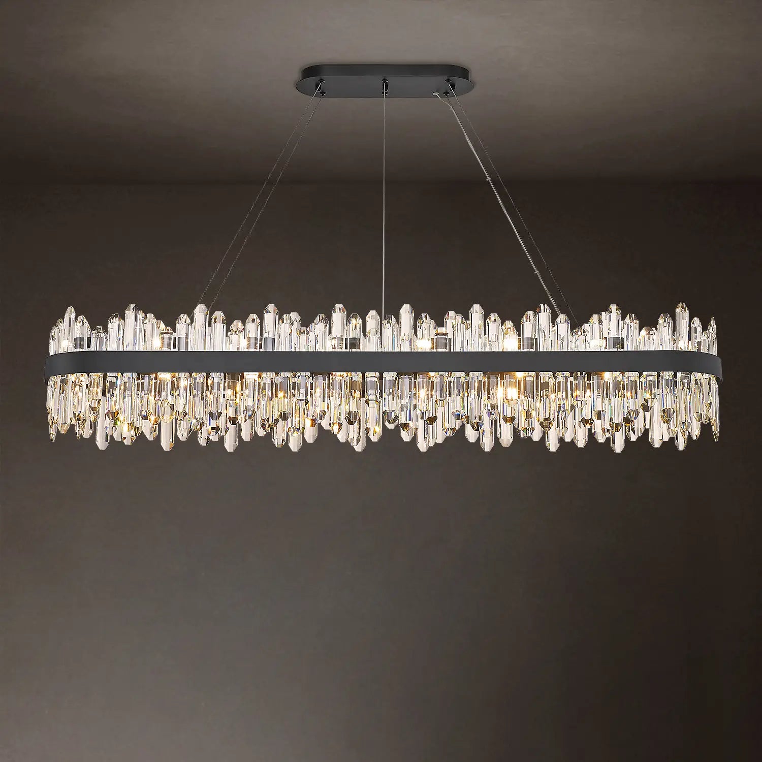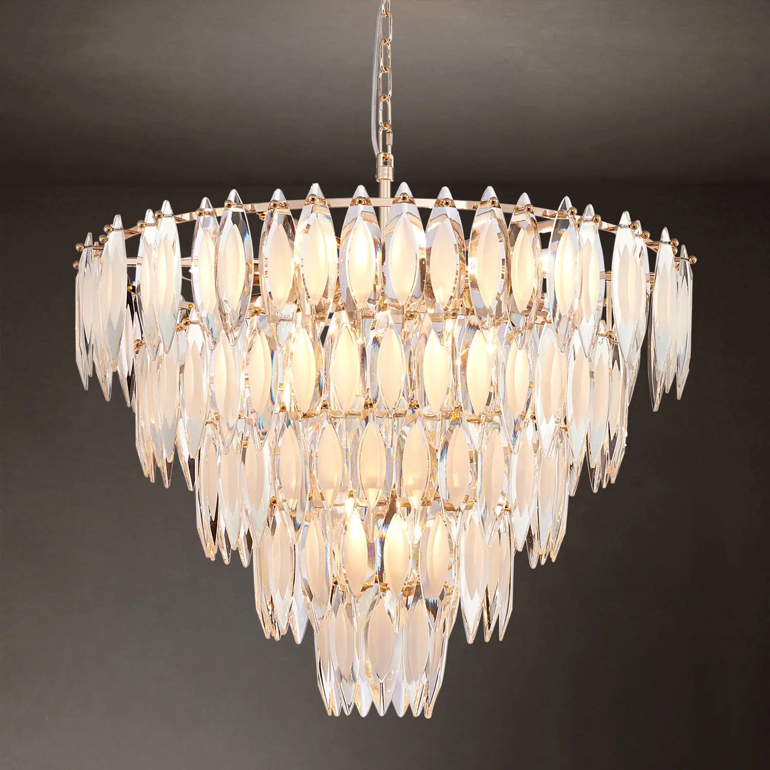 K9 crystal is often used in modern crystal chandeliers due to its clarity and consistent appearance. It allows the fixture to remain visually clean while working well with LED light sources.